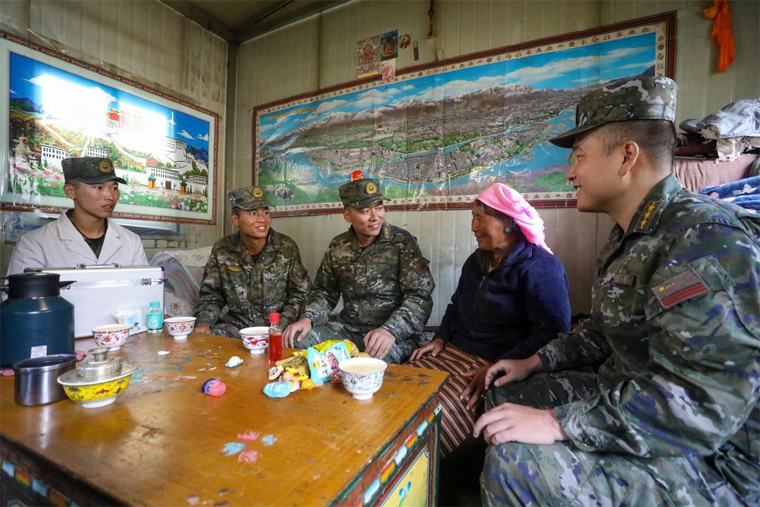 圖為武警官兵為藏族老人巡診。