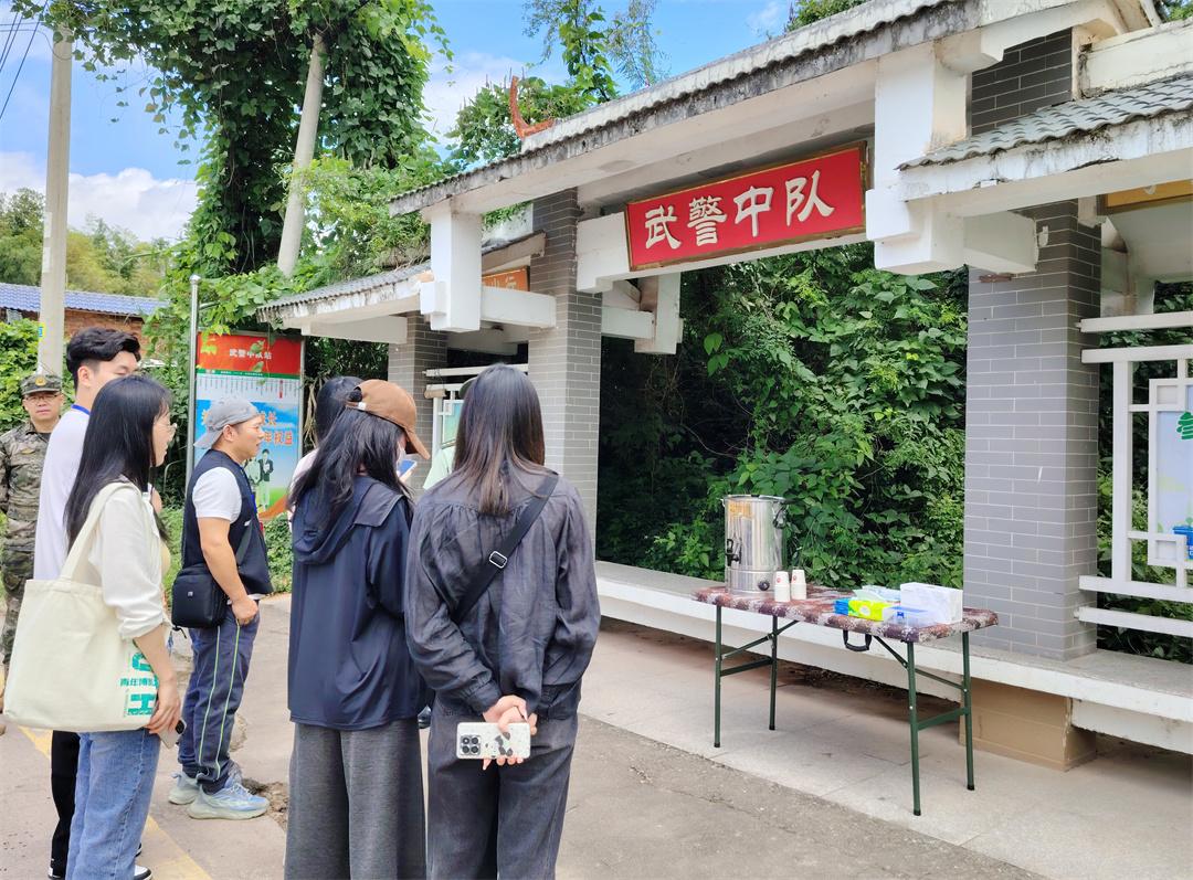 圖為媒體記者走進(jìn)“武警中隊(duì)公交站”便民點(diǎn)。沈少敏 攝