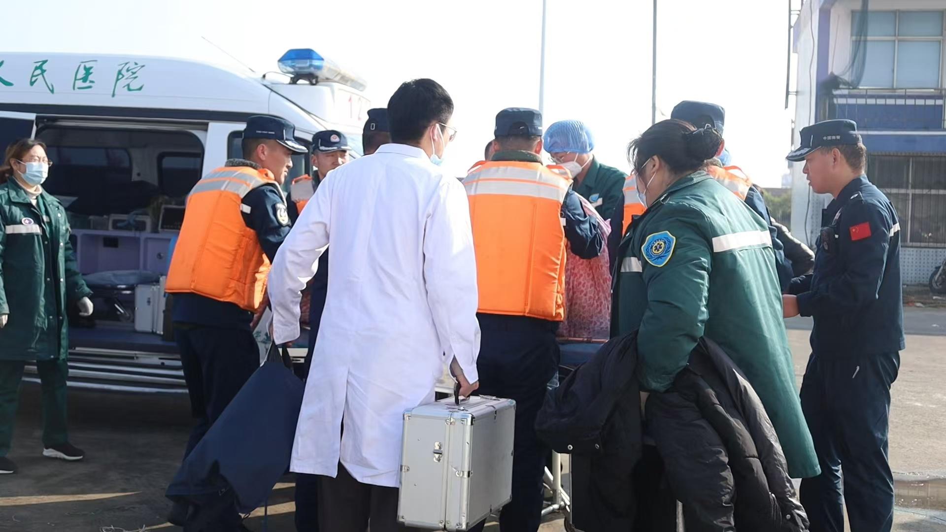 9時(shí)45分,白石艇靠泊榮成第二工作站碼頭。早已在此等候的當(dāng)?shù)?20救護(hù)車(chē)將8名船員轉(zhuǎn)運(yùn)至當(dāng)?shù)蒯t(yī)院。經(jīng)過(guò)醫(yī)院全力救治,6人身體狀況穩(wěn)定,1人不幸失去生命體征,另1人仍在搶救中。