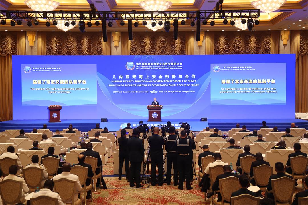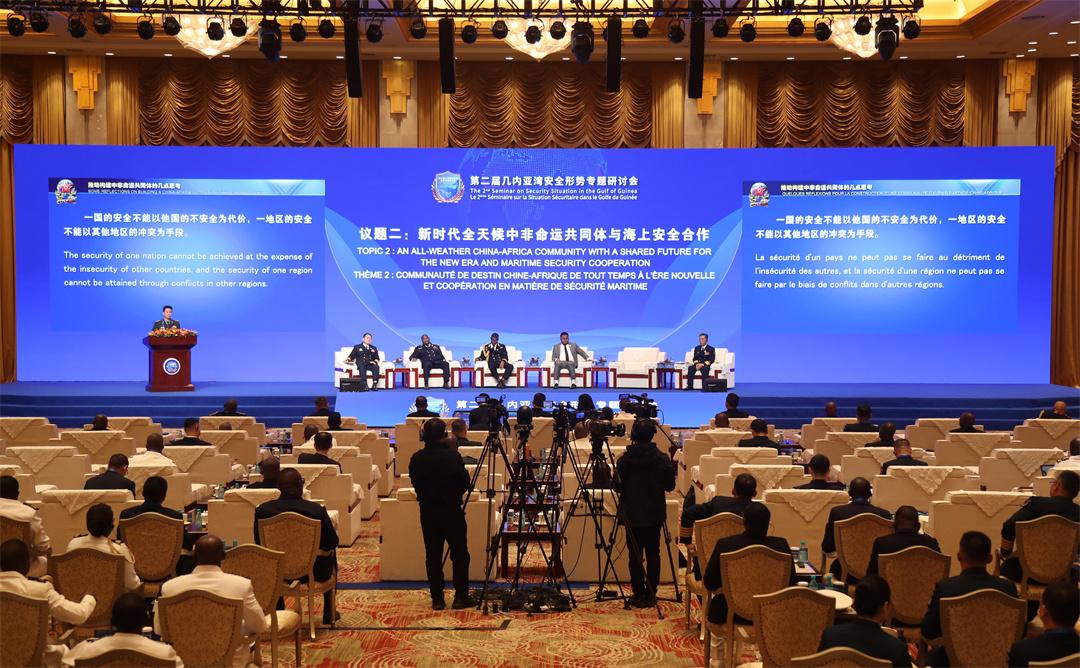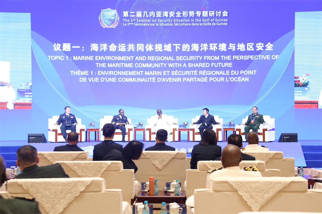 研討會(huì)期間,中國(guó)海軍司令員胡中明上將作主旨發(fā)言,貝寧、佛得角、喀麥隆、剛果(布)、剛果(金)、加蓬、岡比亞、幾內(nèi)亞、尼日利亞等9個(gè)國(guó)家代表團(tuán)團(tuán)長(zhǎng)圍繞“幾內(nèi)亞灣海上安全形勢(shì)與合作”主題進(jìn)行發(fā)言,部分外方代表和中方專家學(xué)者參與“海洋命運(yùn)共同體視域下的海洋環(huán)境與地區(qū)安全”“新時(shí)代全天候中非命運(yùn)共同體與海上安全合作”2個(gè)分議題討論交流,就更好落實(shí)中非合作論壇北京峰會(huì)成果、推動(dòng)實(shí)施“安全共筑伙伴行動(dòng)”發(fā)表觀點(diǎn)和見解?,F(xiàn)場(chǎng)互動(dòng)環(huán)節(jié),與會(huì)人員針對(duì)大家關(guān)心的安全合作問題踴躍提問,深入探討共同應(yīng)對(duì)海盜、走私、非法捕撈等海上威脅和挑戰(zhàn)的有效舉措,現(xiàn)場(chǎng)氣氛友好熱烈。