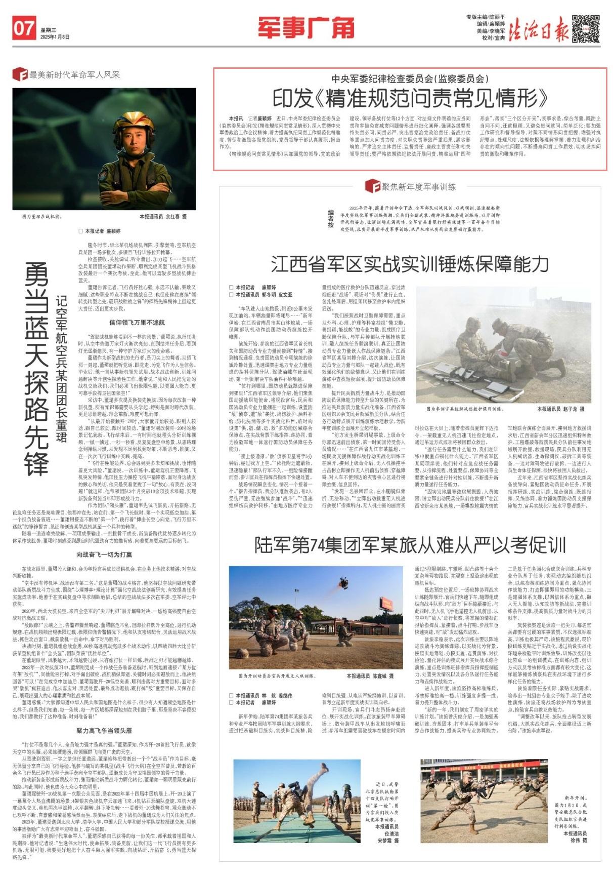 近日,中央軍委紀(jì)律檢查委員會(huì)(監(jiān)察委員會(huì))印發(fā)《精準(zhǔn)規(guī)范問責(zé)常見情形》,深入貫徹中央軍委政治工作會(huì)議精神,著力提高執(zhí)紀(jì)問責(zé)工作規(guī)范化精準(zhǔn)度,督促和激勵(lì)各級(jí)黨組織、黨員領(lǐng)導(dǎo)干部認(rèn)真履職、擔(dān)當(dāng)作為。