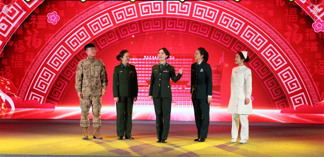 情景劇由第四醫(yī)學(xué)中心官兵員工排練演出,5個故事分別從不同側(cè)面反映官兵員工在總醫(yī)院和中心黨委領(lǐng)導(dǎo)下,扎根崗位、拼搏進(jìn)取的奮斗經(jīng)過和取得的成果。情景劇一開場,歡欣鼓舞的5位官兵代表用寫春聯(lián)的形式回顧一年走過的奮斗足跡。
