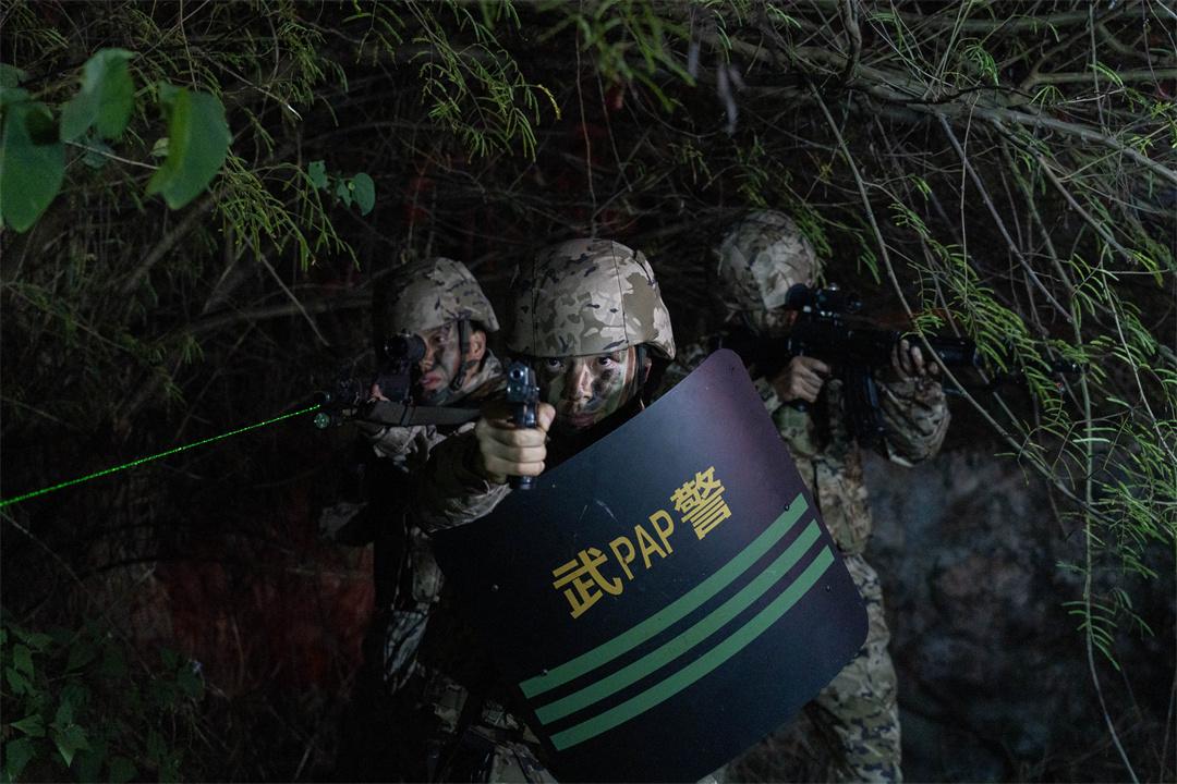圖為武警官兵掩護(hù)隊(duì)友追擊目標(biāo)。