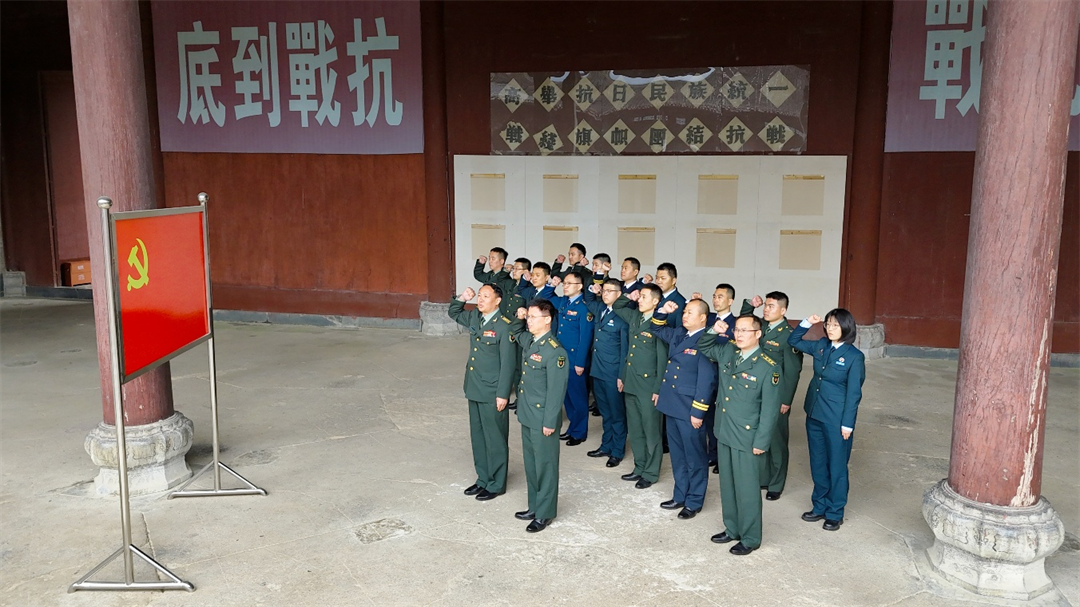 圖為在新四軍軍部舊址組織全體人員重溫入黨誓詞。