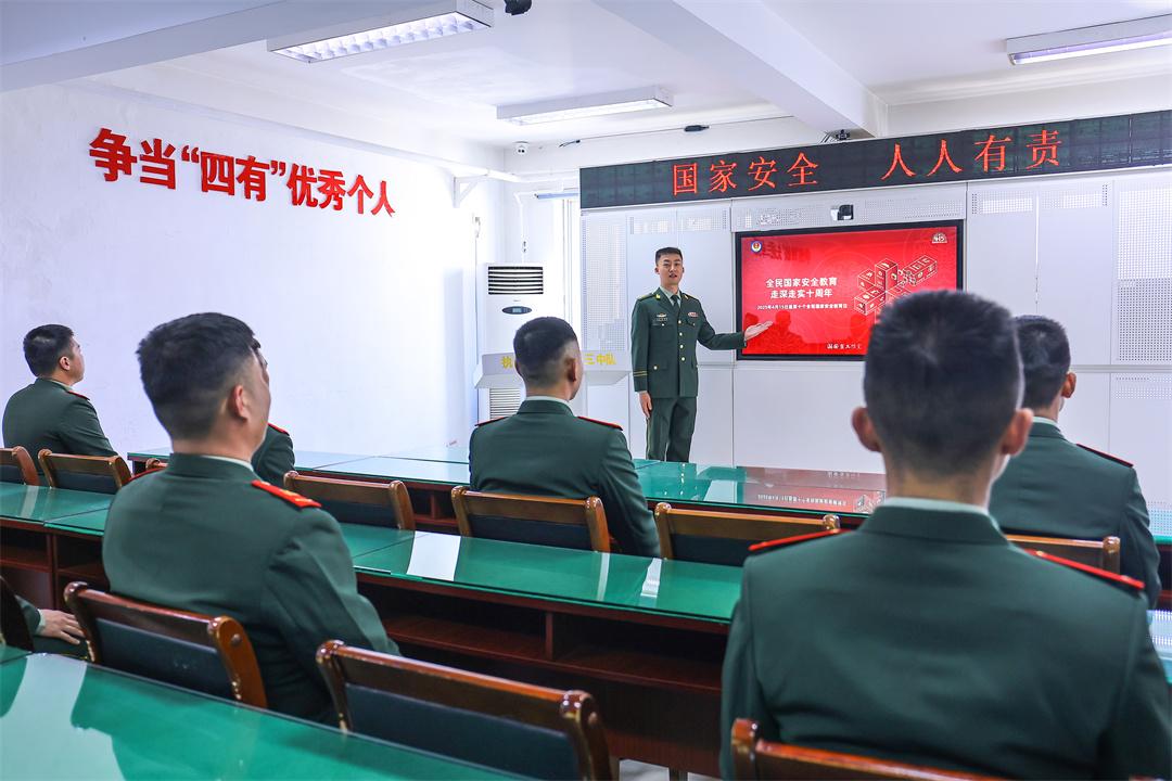 開展國家安全教育、舉辦主題知識競賽、講述身邊安全故事……連日來,形式多樣的國家安全教育主題活動在該支隊各單位展開,增強了官兵對總體國家安全觀的認識,強化了推進國防和軍隊建設的責任擔當?!皣野踩粌H包括政治安全、軍事安全,還有糧食安全、生物安全、數(shù)據(jù)安全等,這些都是國家安全的重要內(nèi)容,通過開展這次主題活動提高了我對國家安全的立體認識。”該支隊下士黃沈南說。