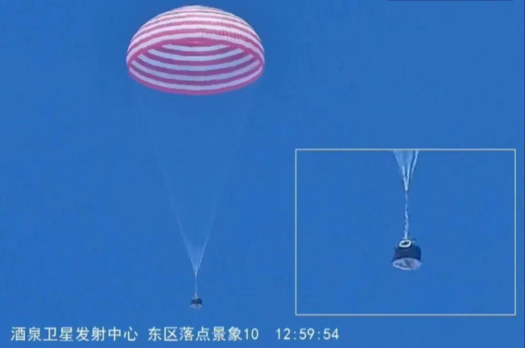 4月30日13時(shí)08分,以每秒7.9公里的速度沖入大氣層、經(jīng)受住2000℃高溫考驗(yàn)的神舟十九號(hào)載人飛船返回艙,在東風(fēng)著陸場(chǎng)成功著陸。神舟十九號(hào)航天員蔡旭哲、宋令東、王浩澤安全順利出艙。