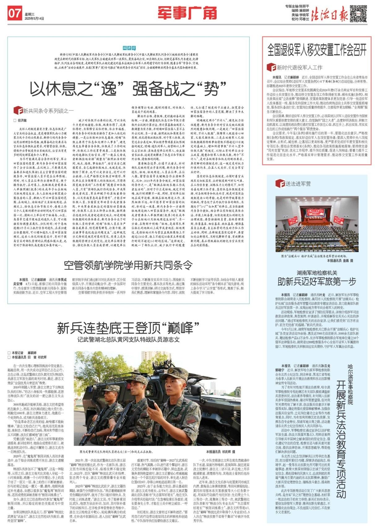 近日,全國(guó)退役軍人移交安置工作會(huì)在山東省青島市召開(kāi)。會(huì)議結(jié)合貫徹《退役軍人安置條例》(以下簡(jiǎn)稱《條例》)總結(jié)經(jīng)驗(yàn)、分析形勢(shì),部署推進(jìn)2025年度移交安置工作。
