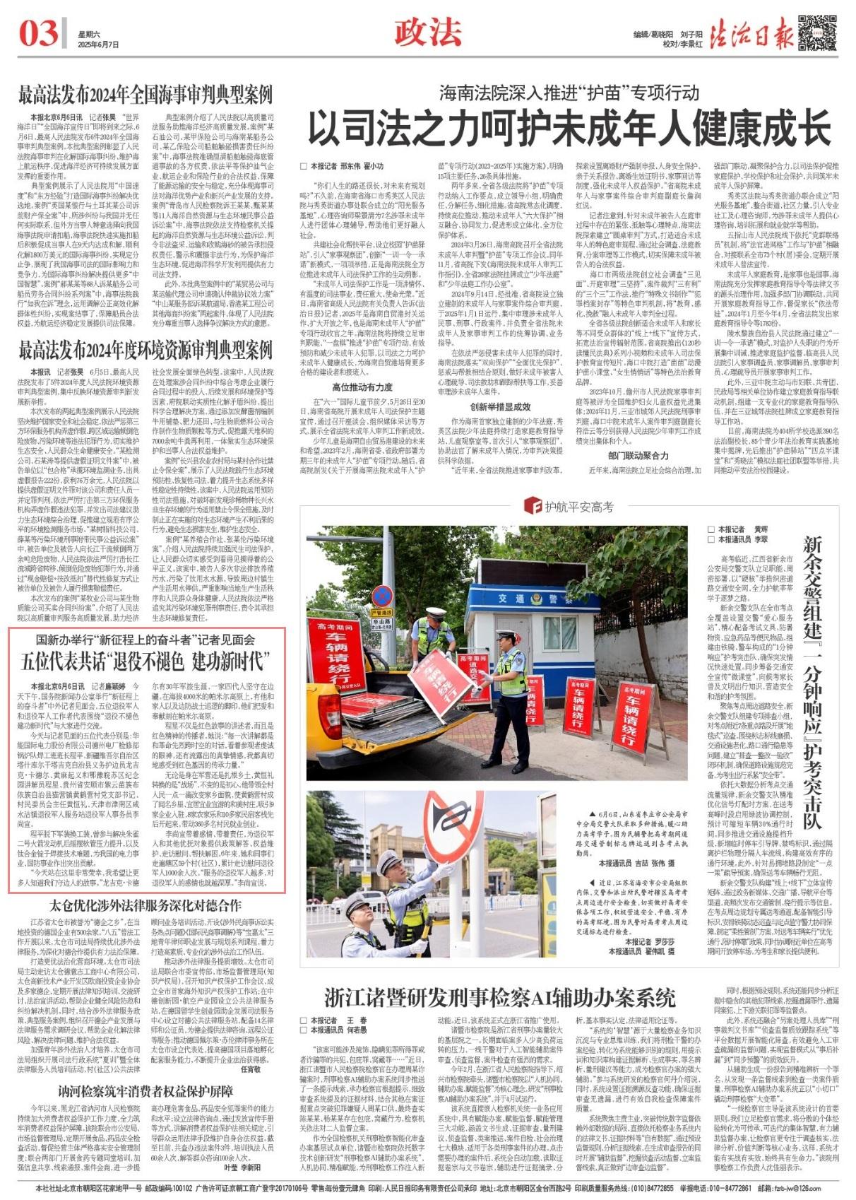 6月6日下午,國(guó)務(wù)院新聞辦公室舉行“新征程上的奮斗者”中外記者見(jiàn)面會(huì),五位退役軍人和退役軍人工作者代表圍繞“退役不褪色 建功新時(shí)代”與大家進(jìn)行交流。