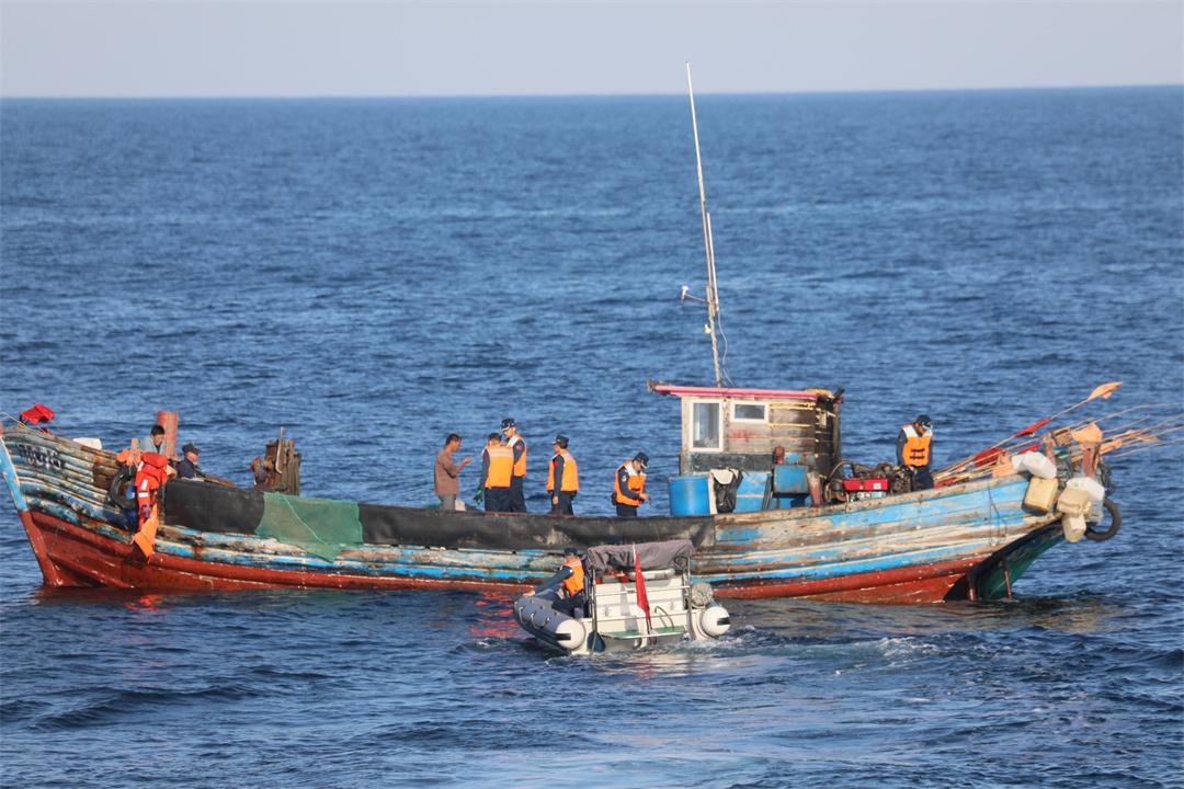 中國海警局直屬第六局瞭望艦憑借對海區(qū)態(tài)勢的了如指掌和艦艇的卓越性能,快速抵達目標(biāo)海域。艦載雷達與無人機回傳信息相互印證,僅用十多分鐘就迅速鎖定目標(biāo)。兩艘嫌疑船察覺海警艦艇逼近,如驚弓之鳥分頭逃竄。瞭望艦指揮員當(dāng)機立斷,憑借航速與操控優(yōu)勢,將其牢牢控制。執(zhí)法隊員果斷實施登臨檢查,第一時間掌控嫌疑漁船及人員。
