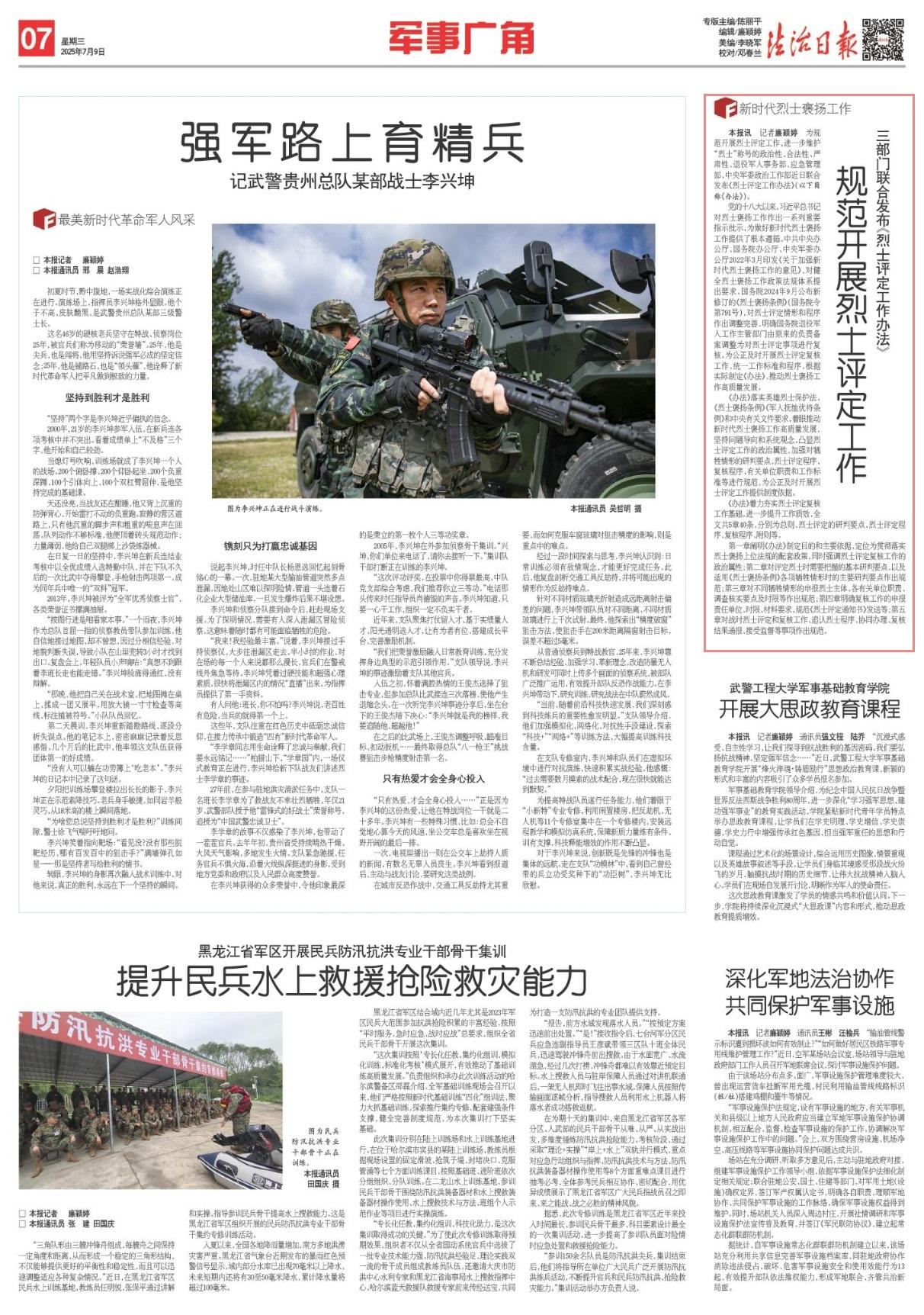 《辦法》落實英雄烈士保護法、《烈士褒揚條例》《軍人撫恤優(yōu)待條例》和中央有關(guān)文件要求,著眼推動新時代烈士褒揚工作高質(zhì)量發(fā)展,堅持問題導向和系統(tǒng)觀念,凸顯烈士評定工作的政治屬性,加強對犧牲情形的研判要點、烈士評定程序、復核程序、有關(guān)單位職責和工作標準等進行規(guī)范,為公正及時開展烈士評定工作提供制度依據(jù)。