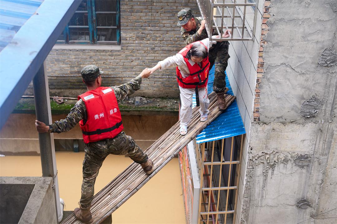 “老鄉(xiāng),我們是從凱里趕過來救災(zāi)的武警支隊,這次洪峰過境風(fēng)險比較高……”“政府不會不管大家的……”陳方明耐心勸說,終于打動老人同意撤離。