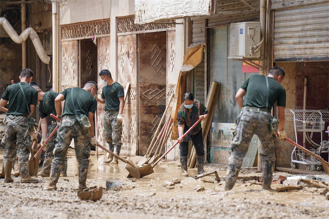 “我們早一秒到達(dá),群眾就少一分危險?!边@是官兵們共同的心聲。連續(xù)奮戰(zhàn)數(shù)小時,武警官兵共疏散轉(zhuǎn)移群眾1500余人,解救被困群眾890余人,轉(zhuǎn)運(yùn)物資810余件套。來不及休整,官兵們隨即轉(zhuǎn)戰(zhàn)清淤排險、家園重建工作。