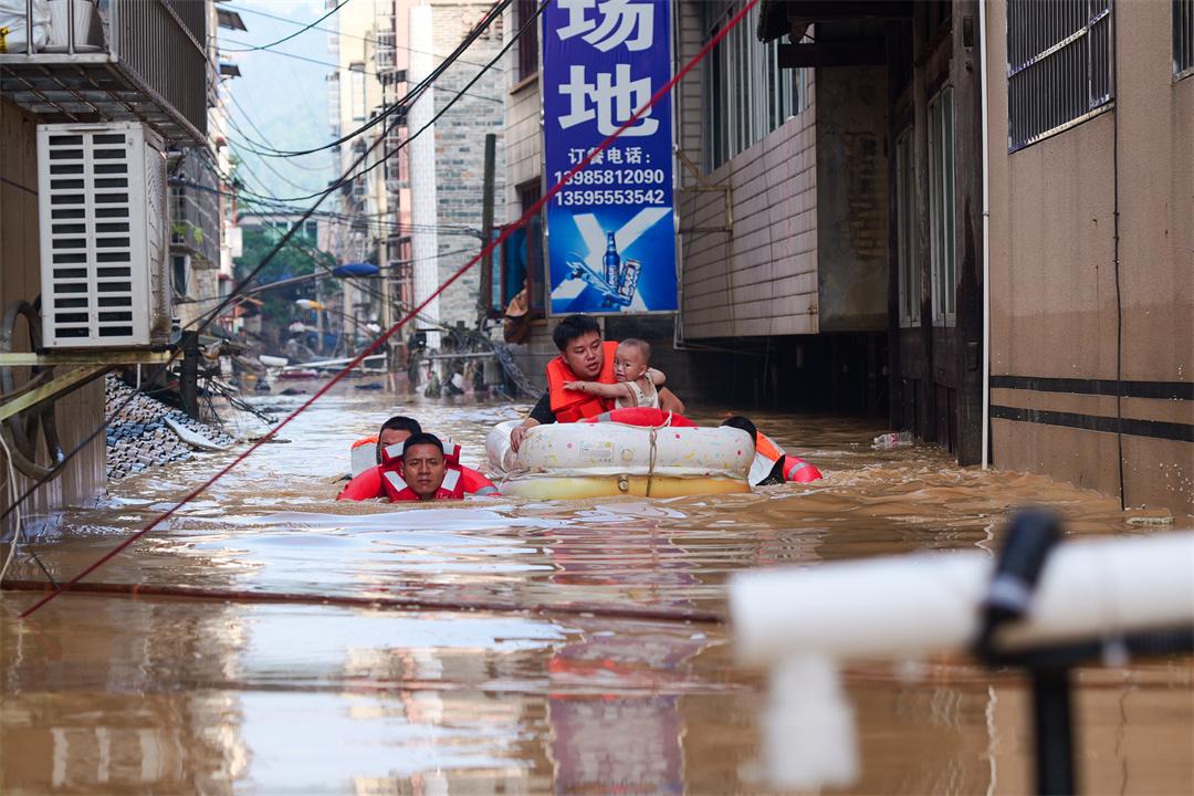6月24日至7月5日,受持續(xù)強(qiáng)降雨及上游來水疊加影響,貴州省黔東南州榕江縣城遭遇兩次洪峰過境,境內(nèi)多條河流水位持續(xù)上漲,縣城多處低洼地帶被淹,人民群眾生命財產(chǎn)安全遭受嚴(yán)重威脅。武警貴州總隊聞令而動,先后派出千余名官兵攜帶救生衣、沖鋒舟、挖掘機(jī)、推土機(jī)等救援器材奔赴一線,緊急馳援。