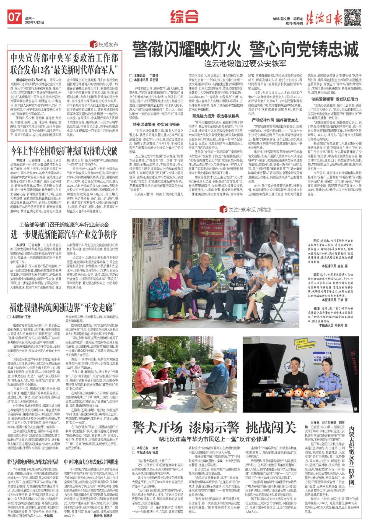 據(jù)新華社北京7月20日電 為深入學(xué)習(xí)貫徹習(xí)近平新時代中國特色社會主義思想,深入學(xué)習(xí)貫徹習(xí)近平強軍思想,激勵廣大官兵在黨的旗幟下奮進強軍新征程,全力打好實現(xiàn)建軍一百年奮斗目標攻堅戰(zhàn),為強軍事業(yè)艱苦奮斗、頑強奮斗、不懈奮斗,在中國人民解放軍建軍98周年之際,中央宣傳部、中央軍委政治工作部聯(lián)合發(fā)布12名“最美新時代革命軍人”。