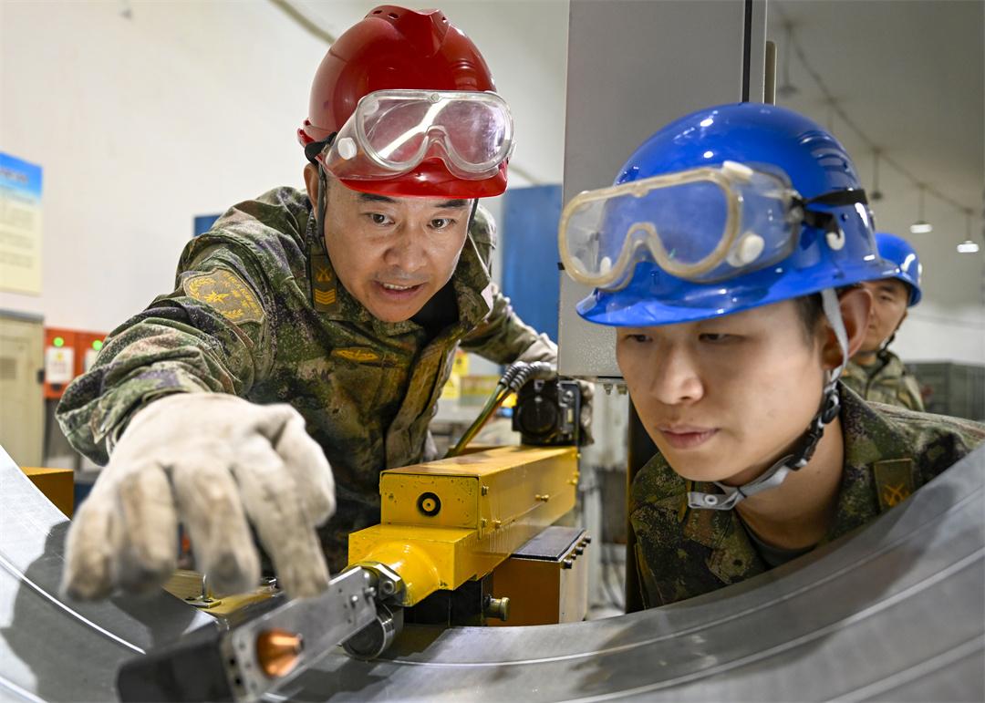 圖為崔道虎 (左一)幫帶戰(zhàn)友查找排除設(shè)備故障。劉明松 攝