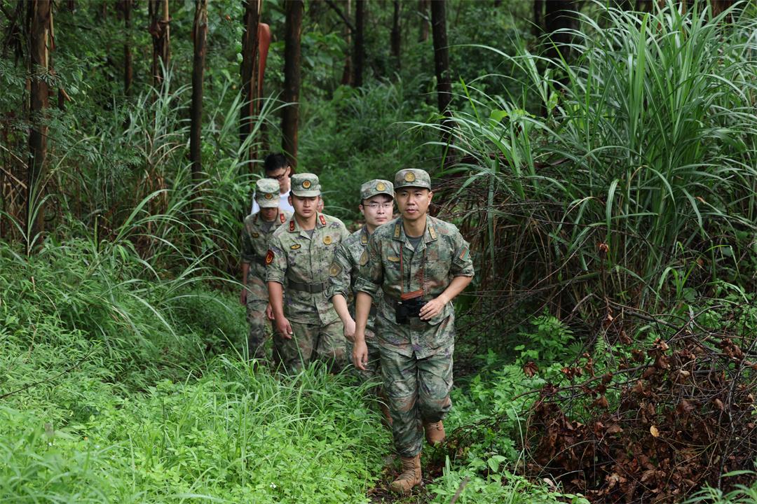 圖為謝亮(前一)帶隊(duì)組織軍地聯(lián)合勘察。梁凱昌 攝