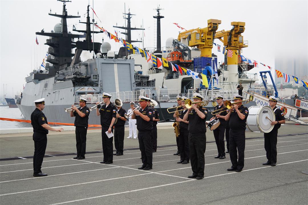 圖為抵達(dá)符拉迪沃斯托克后,中國艦艇編隊受到熱烈歡迎。黨文彬 攝