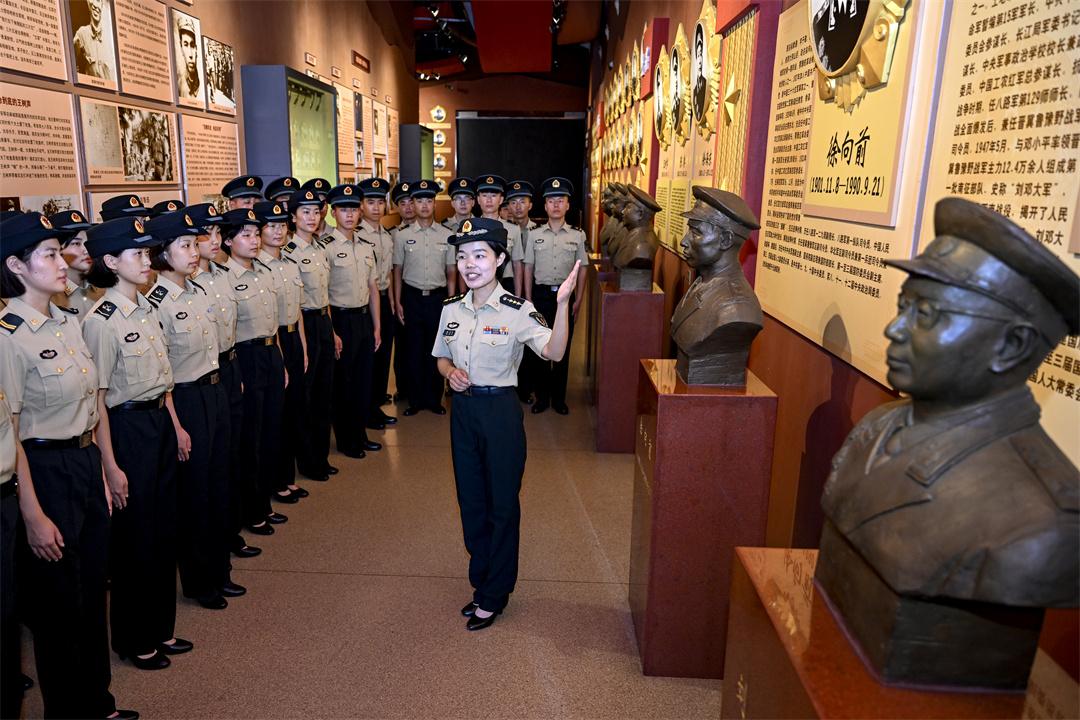 圖為陳東森(右)帶領官兵來到駐地理想信念教育基地,開展現(xiàn)地教育實踐活動。