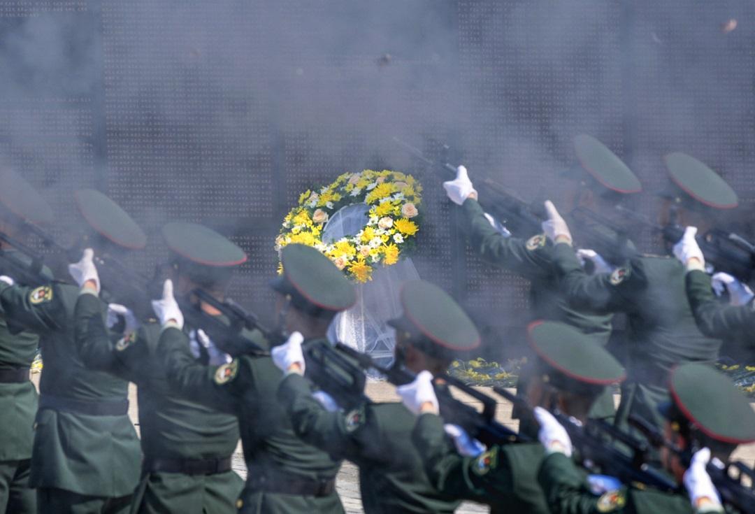 圖為9月13日,禮兵連續(xù)鳴槍12響,向志愿軍烈士致以崇高敬意。張永進(jìn) 攝