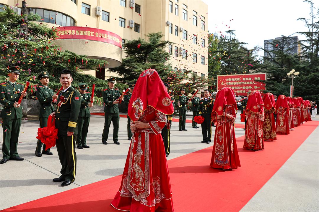 10月1日清晨,秋日的朝陽為營區(qū)鍍上金邊,在舉國歡慶中華人民共和國成立76周年的喜慶日子里,武警北京總隊(duì)執(zhí)勤第六支隊(duì)營區(qū)內(nèi)彩旗飄揚(yáng)、禮樂喧天,主題為“家國同慶 緣定軍營”集體婚禮的序曲悄然奏響,10對身著軍裝與嫁衣的新人,在戰(zhàn)友和親屬共同見證下,攜手步入婚姻殿堂,以最真摯的愛意致敬愛情,以最赤誠的初心祝福祖國。