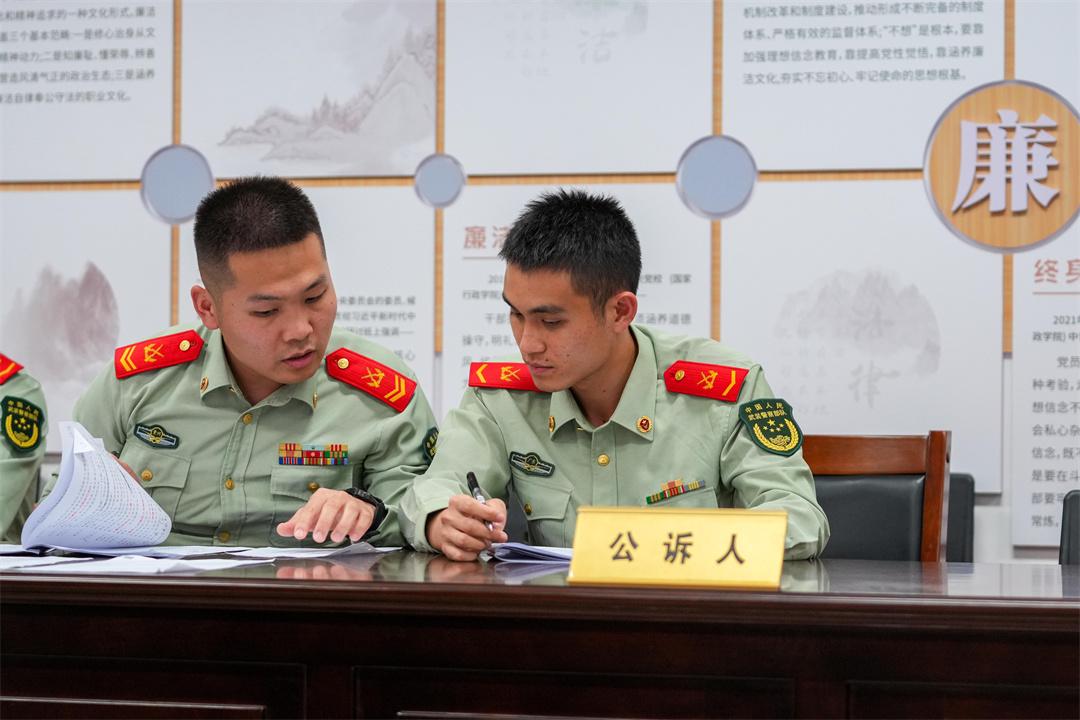“現(xiàn)在開庭!”隨著“審判長(zhǎng)”敲響法槌,“庭審”在武警后勤學(xué)院學(xué)員某大隊(duì)拉開帷幕。