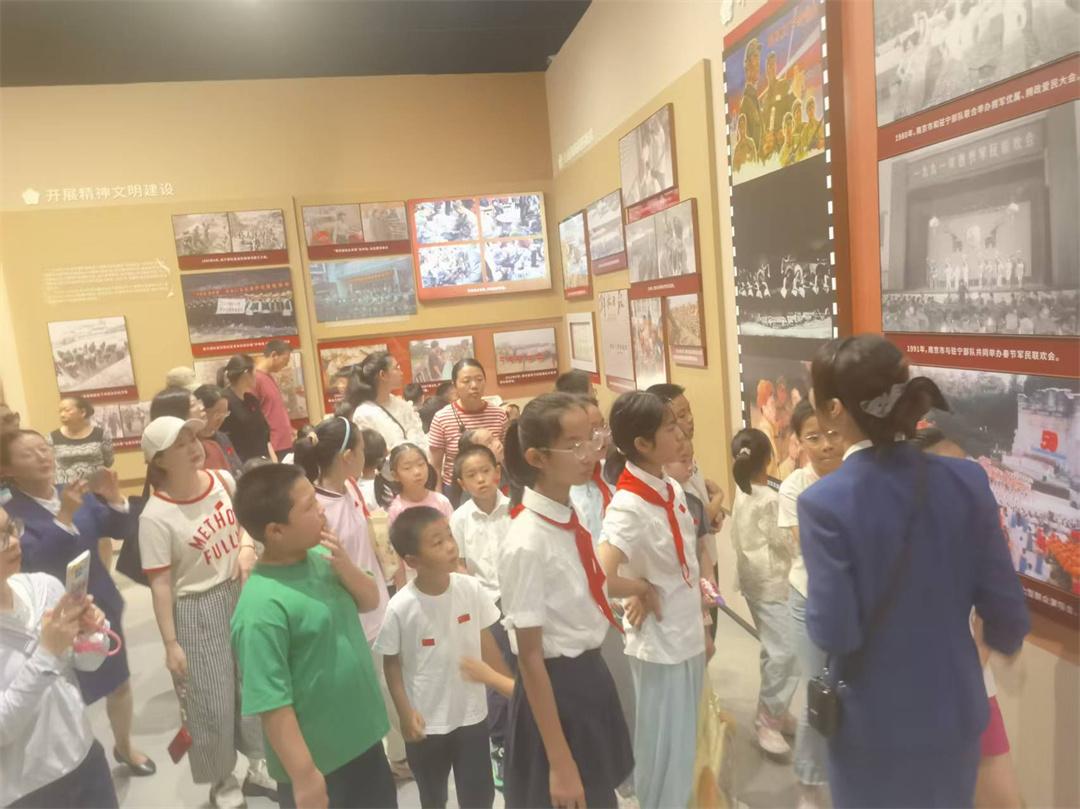 南京雙擁文化館展陳面積約2500平方米,主題為“軍民同心榮光共鑄”,分為浴血奮戰(zhàn)魚水情深、奮發(fā)圖強(qiáng)休戚與共、勇立潮頭軍民同心、踔厲前行強(qiáng)國強(qiáng)軍四個(gè)篇章,采取圖文、實(shí)物、影像、AI復(fù)原等多元手段,講述發(fā)生在南京的雙擁故事,生動呈現(xiàn)“愛我人民愛我軍”的時(shí)代篇章和軍政軍民團(tuán)結(jié)的恢宏畫卷。試開放當(dāng)天,有上千人次前來參觀。