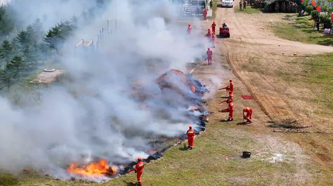 在空中和地面力量協(xié)同配合下,大火很快被撲滅。這是伊春市黨政軍領(lǐng)導(dǎo)參加“軍事日”暨特色民兵分隊(duì)建設(shè)觀摩活動(dòng)的一個(gè)鏡頭。