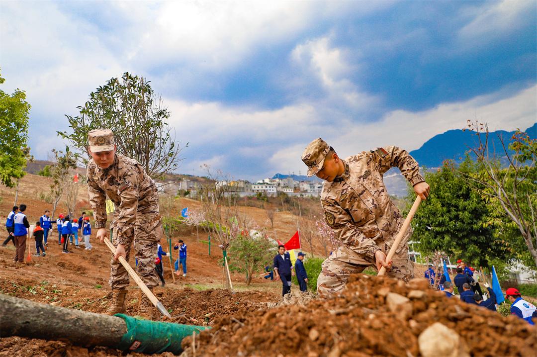 圖為官兵參加義務植樹。