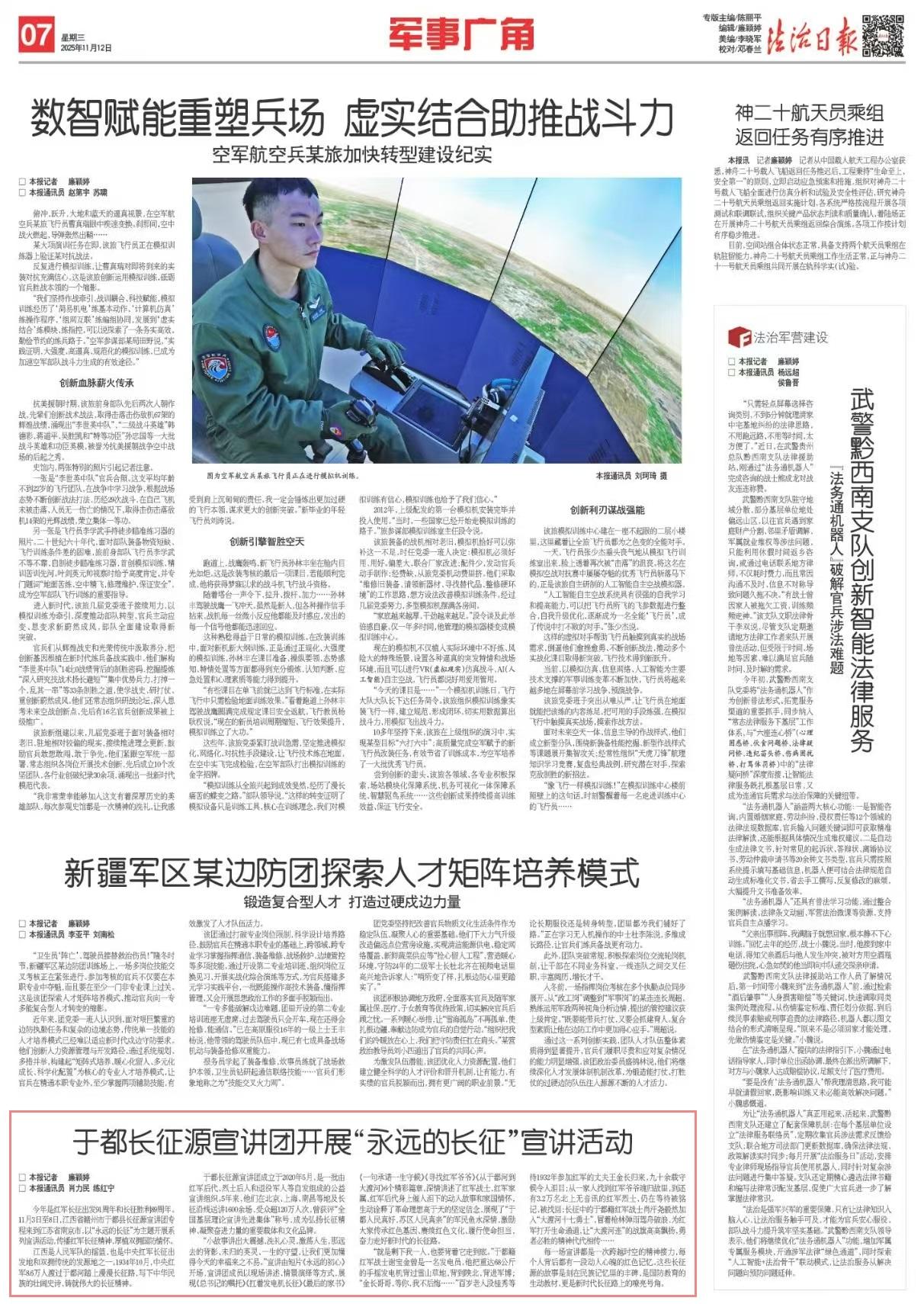每一場宣講都是一次跨越時空的精神接力,每個人背后都有一段動人心魄的紅色記憶。這些長征源的故事是刻在民族記憶里的豐碑,是國防教育的生動教材,更是新時代長征路上的嘹亮號角。