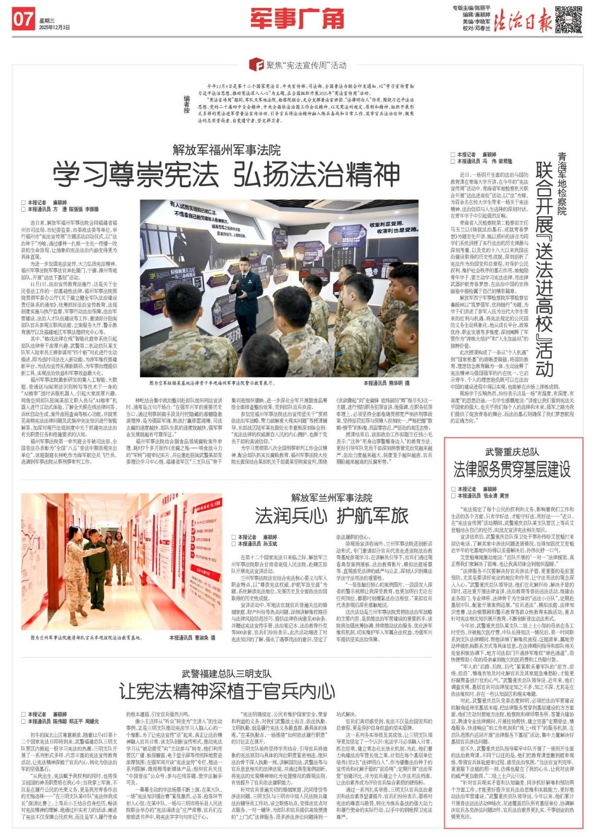 “針對(duì)官兵現(xiàn)實(shí)矛盾和認(rèn)知偏差,同步抓好解難和預(yù)防兩個(gè)方面工作,才能更好提升官兵法治思維和實(shí)踐能力,更好推動(dòng)法治軍營(yíng)建設(shè)。”武警重慶總隊(duì)領(lǐng)導(dǎo)說(shuō),今年以來(lái),他們累計(jì)開展普法送法活動(dòng)68場(chǎng)次,足跡覆蓋總隊(duì)所有基層單位,協(xié)調(diào)解決官兵各類涉法問(wèn)題23件,官兵法治素養(yǎng)更扎實(shí),干事創(chuàng)業(yè)的熱情更充沛。