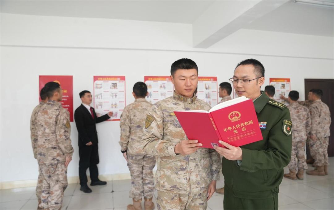 圖為西部戰(zhàn)區(qū)第二軍事法院法官為官兵講解憲法知識(shí)。劉濤 攝