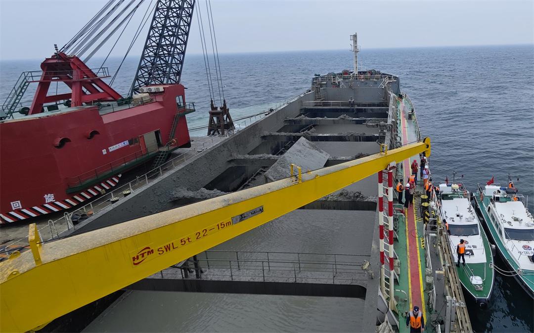 圖為防城港海警局登臨檢查長鯨16號泥駁船,查處一起未按照國家規(guī)定使用海洋傾廢在線監(jiān)控設備案。