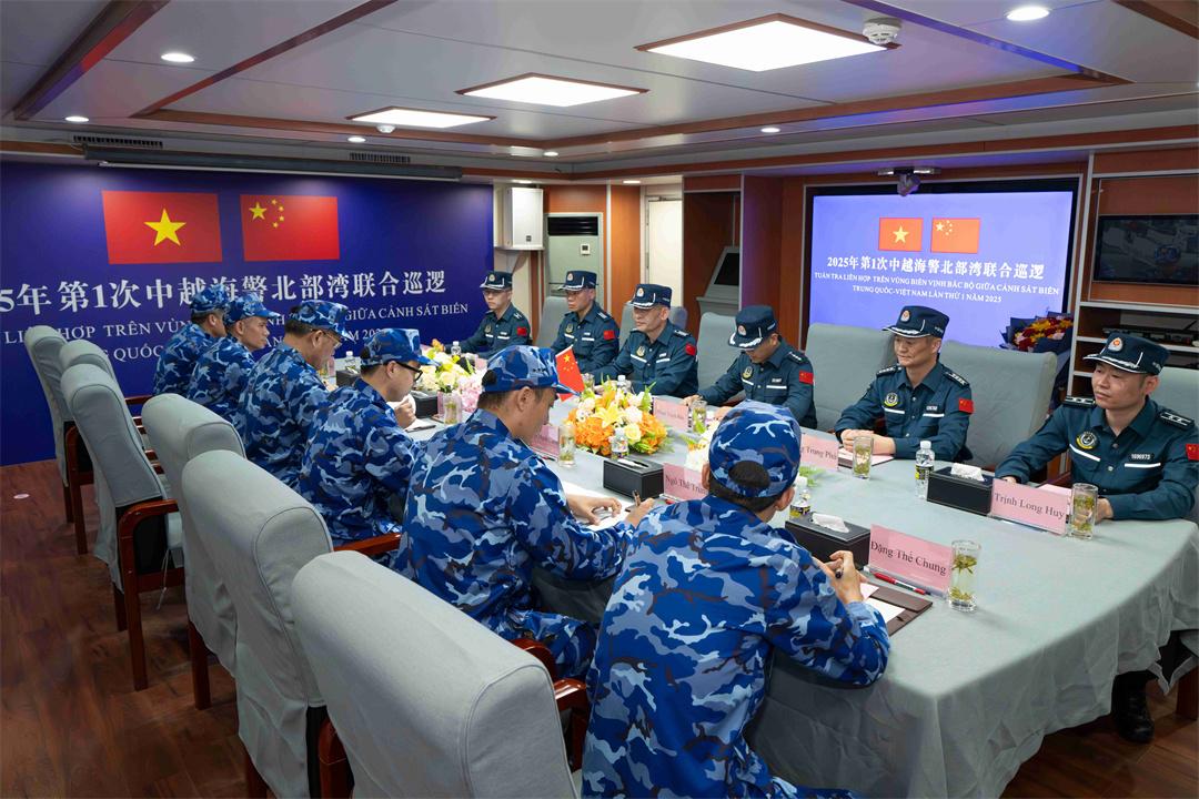 圖為中越海警2025年第一次北部灣聯(lián)合巡檢,雙方在4302艦會晤。