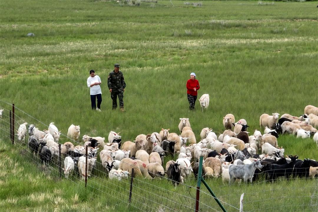 圖為布和圖木爾(中)到牧區(qū)草場實(shí)地走訪。