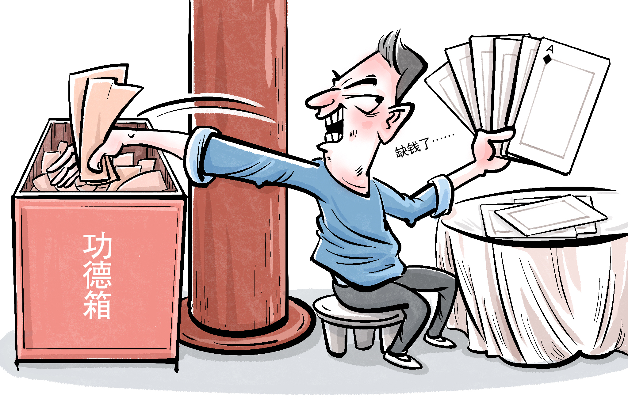 近日,四川宜賓男子劉某因缺錢打牌,竟撬開寺廟功德箱盜取百余元。被警方抓獲后,劉某狡辯道,以為“佛祖開光”的錢能助他贏牌,計(jì)劃贏后再捐回,不料全數(shù)輸光。目前,劉某已被警方依法行政拘留。