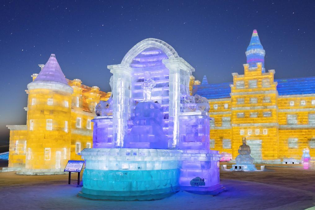 在哈爾濱冰雪大世界,來自世界各地的游客在“冰雪王國”感受冬日限定快樂。