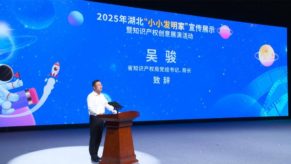 活動(dòng)在武漢市光谷第二十一小學(xué)樂隊(duì)和機(jī)器人共同帶來的開場(chǎng)秀《閃耀明天》中拉開帷幕。湖北省知識(shí)產(chǎn)權(quán)局局長(zhǎng)吳駿致辭表示,此次活動(dòng)旨在為全省熱愛科學(xué)、勇于創(chuàng)新的青少年們搭建一個(gè)激發(fā)靈感、展示才華、交流互鑒的廣闊平臺(tái),讓創(chuàng)新的種子在幼小的心靈中生根發(fā)芽,讓知識(shí)產(chǎn)權(quán)的理念在青春的土壤里茁壯成長(zhǎng)。他親切寄語“小小發(fā)明家”,永葆好奇之心,敢于提問,善于思考,勤于動(dòng)手,將天馬行空的想象變成創(chuàng)新創(chuàng)造的作品;初識(shí)知識(shí)產(chǎn)權(quán),了解它、尊重它、運(yùn)用它,學(xué)會(huì)保護(hù)創(chuàng)意,尊重發(fā)明創(chuàng)造;同時(shí)志存高遠(yuǎn),將今天的興趣發(fā)展成為明天的志向,努力成長(zhǎng)為科技自立自強(qiáng)的棟梁之材。