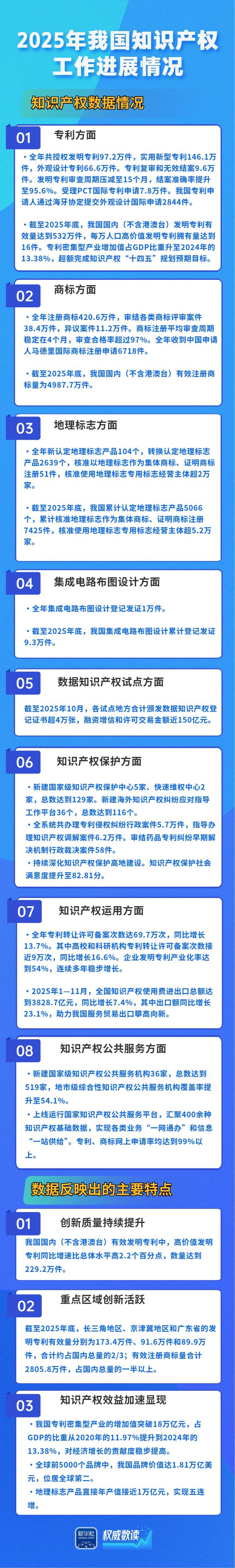發(fā)明專利有效量達(dá)532萬件,人工智能專利有效量居全球前列,地理標(biāo)志產(chǎn)品直接年產(chǎn)值實(shí)現(xiàn)五連增……在23日國新辦新聞發(fā)布會(huì)上,國家知識(shí)產(chǎn)權(quán)局介紹2025年我國知識(shí)產(chǎn)權(quán)工作進(jìn)展情況。跟隨海報(bào),一起來看看吧。