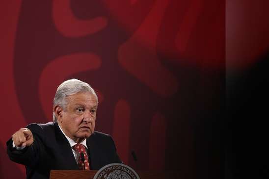 6月6日,在墨西哥首都墨西哥城國(guó)家宮,墨西哥總統(tǒng)洛佩斯出席新聞發(fā)布會(huì)。