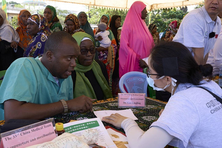 圖為第33期中國援桑給巴爾醫(yī)療隊隊員為當(dāng)?shù)孛癖娞峁┙】底稍兎?wù)。新華社發(fā)(第33期中國援桑給巴爾醫(yī)療隊供圖)
