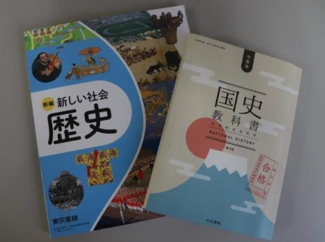 東京書籍出版的《新編 新社會 歷史》和令和書籍出版的《國史教科書(第7版)》(新華社記者陳澤安 攝)