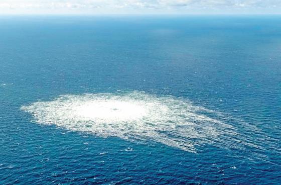 圖為丹麥國(guó)防部2022年9月27日發(fā)布的航拍照片顯示的是一處“北溪”天然氣管道泄漏點(diǎn)。 新華社發(fā)