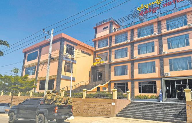 圖為當?shù)貢r間2025年2月14日,緬甸東部妙瓦底鎮(zhèn),克倫邊防部隊(BGF)成員在水溝谷巡邏,打擊與詐騙中心相關(guān)的非法活動。 CFP供圖