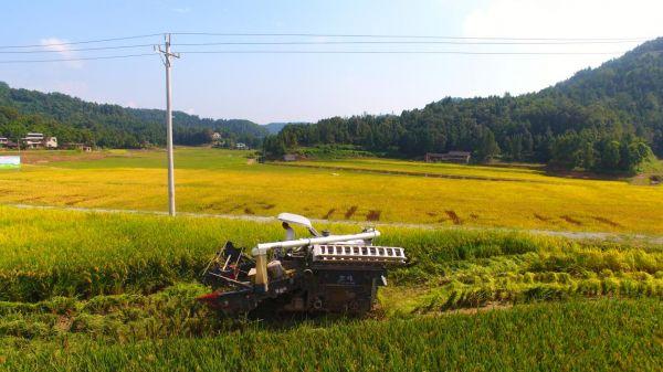 農(nóng)機(jī)收割水稻(恩陽(yáng)區(qū)委組織部供圖)
