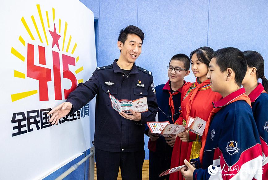 4月12日,呼和浩特市玉泉區(qū)公安分局警支大隊民警向?qū)W生宣講國家安全相關(guān)法律法規(guī)知識。丁根厚 攝