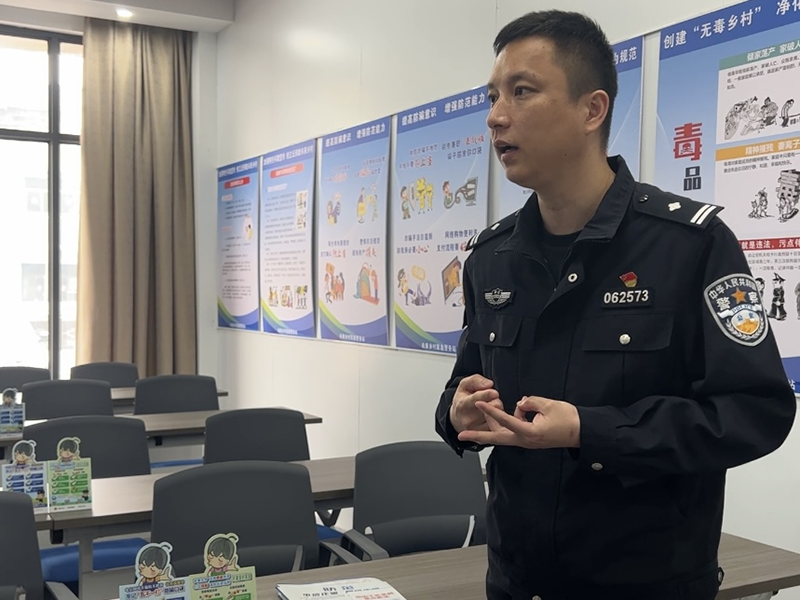 小南海派出所所長(zhǎng)童俊來介紹宣教中心功能 徐媛/攝