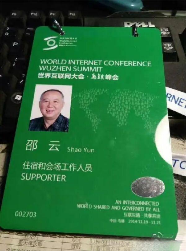 其中一條2014年的微博上,放著一張?zhí)貏e的工作證——這是邵云參與首屆世界互聯(lián)網(wǎng)大會的籌備工作時留下的。“首屆世界互聯(lián)網(wǎng)大會,前來參加展覽的還是支付寶、二維碼這些現(xiàn)在早就不稀奇的東西。那時候還沒有人臉識別,出入都要靠紙質(zhì)的工作證?!鄙墼苹貞?。