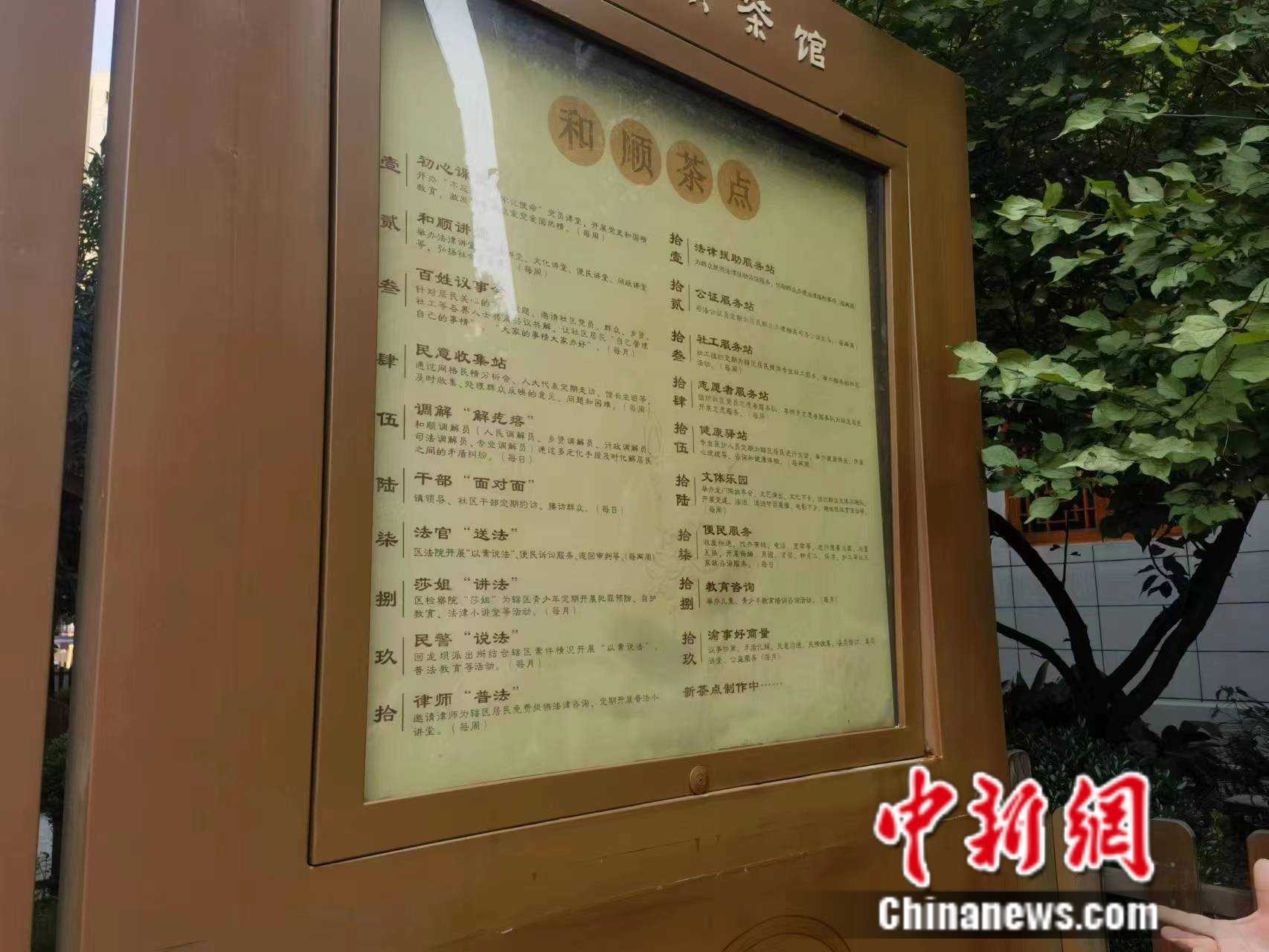 茶館在川渝地區(qū)是常見的休閑去處,在重慶市沙坪壩區(qū)回龍壩鎮(zhèn)聚龍城社區(qū),一間非民辦“和順茶館”成為當(dāng)?shù)乩习傩盏拿咳沾蚩ǖ兀撼撕炔枇奶欤桊^還融合了各職能部門下沉社區(qū)的十幾個辦公室功能。政策宣講、糾紛調(diào)解、法律咨詢……一杯清茶間,社區(qū)里那些難辦、急辦的事總能得到妥善解決。