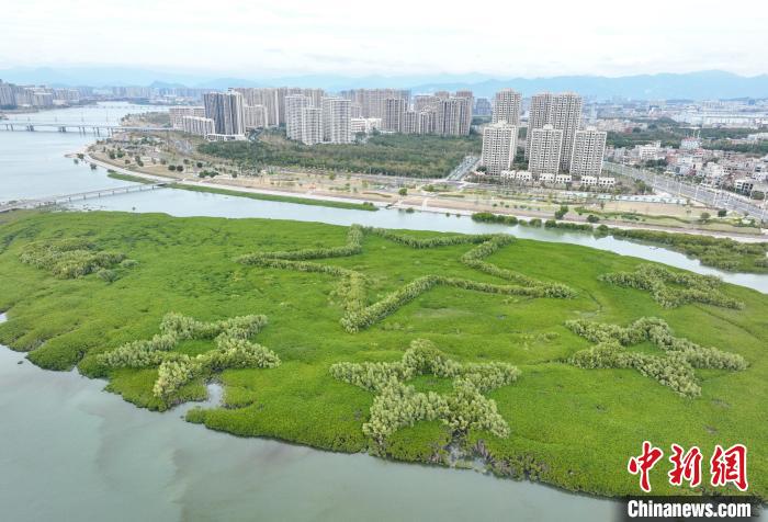 中新網(wǎng)廈門1月25日電(彭莉芳)退潮時(shí)分,在廈門市翔安區(qū)下潭尾紅樹林公園的灘涂上,一組由紅樹林勾勒的地標(biāo)景觀露出海面,郁郁蔥蔥,頗為壯觀。地標(biāo)景觀寓意“我愛中國”,紛至沓來的游客,在暮色中拍照“打卡”,偶爾驚起白鷺一片。