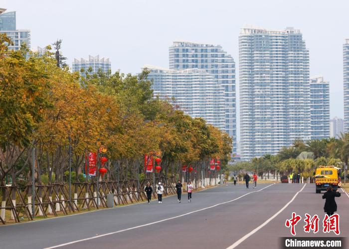 1月23日,市民游客在彩虹跑道上跑步。中新社記者 賈天勇 攝